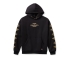 Dickies® x H-D® Eagle Sleeve kapučjakas elegantais dizains apvieno komfortu ar spiedpogu aizdari. Tas ir tāpēc, ka tai ir spiedpogu aizdare, kas silda un lieliski pieguļ braukšanas ekipējumam vai ķiverei. Šis unisex džemperis ir izgatavots no izturīga kokvilnas/poliestera flīsa maisījuma, un tam ir brīvs, liela izmēra piegriezums. Iesakām izvēlēties mazāku izmēru. Elegants ar raksturīgām grafikas detaļām priekšpusē un garām piedurknēm. Daļa no Dickies® x H-D® sadarbības — īpaša izdevuma apģērbs, kas apvieno ikonisku darba apģērbu ar ikonisku motociklu kultūru.