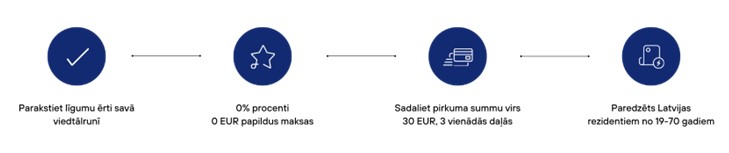 Ar ESTO 3 Jūs varat sadalīt pirkuma summu 3 vienādās daļās, maksājumus veicot 3 mēnešu laikā bez papildus maksas.