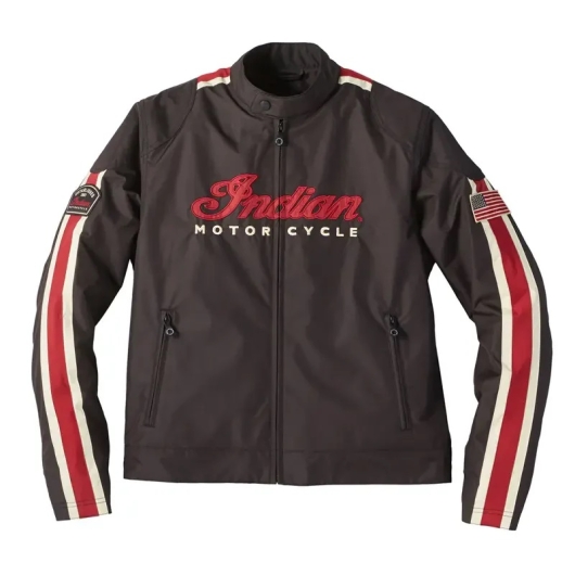 Viegla ikdienas jaka ar drosmīgu zīmolu priekšpusē.