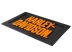 Neslīdošs, izturīgs gumijas durvju sliekšņa paklājiņš ar oranžu Harley-Davidson fontu.