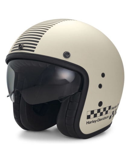 Rally Racer X14 Sun Shield trīs ceturtdaļas ķivere ir pierādījums tam, ka uzticama aizsardzība var pastāvēt līdzās šai steigai pa atklātu ceļu. Izgatavota no iepriekš sagatavotas stikla šķiedras ar ievelkamu saules aizsargu, kas ir izturīgs pret skrāpējumiem, un noņemamu, mitrumu izvadošu starpliku. Tā BOOM! Audio 20S Bluetooth saderība ļauj jums noturēties kursā, izveidot savienojumu un klausīties iecienītākās melodijas braukšanas laikā. Tā sacīkšu iedvesmotais dizains piešķir pagātnes mākslas izskatu autentiskā Harley-Davidson izskatā.