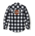 Rūtainā stila audums apvieno elpojošu un vieglu aizsardzību jaunākajā H-D® Mesh Operative Riding krekla jakā. Tās viscaur adītā sieta konstrukcija nodrošina lielāku gaisa cirkulāciju nekā iepriekšējie Operative stili, turklāt esam atjauninājuši spiedpogas un aizdari. Tai ir atstarojošs materiāls, kas uzlabo redzamību, slēpta spiedpogas aizdare, kas brauciena laikā neplīvo, un tā ir aprīkota ar izcilu triecienu aizsardzību no D3O® Ghost™ bruņām plecos un elkoņos. Šī vīriešu motocikla krekla jaka ir arī pārbaudīta un sertificēta, lai atbilstu nodiluma, plīsuma un šuvju izturības prasībām (sīkāka informācija zemāk). Tā ir pabeigta ar nostalģisku grafiku aizmugurē — mūsdienīga Bar & Shield kopija, kas parādījās uz H-D 1920. gadu eļļas kannām.