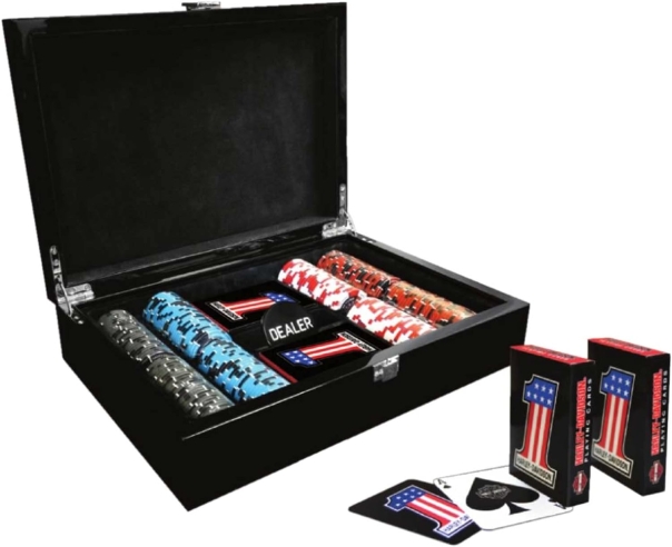• Ietver arī 2 kāršu kavas un dīlera žetonu;