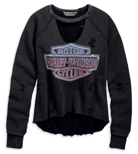 Harley-Davidson® sieviešu retro džemperis - izgatavots no 60% kokvilnas un 40% poliestera vilnas, kas ir mazgāta, lai iegūtu izbalējušu vintage izskatu un īpaši maigu sajūtu.