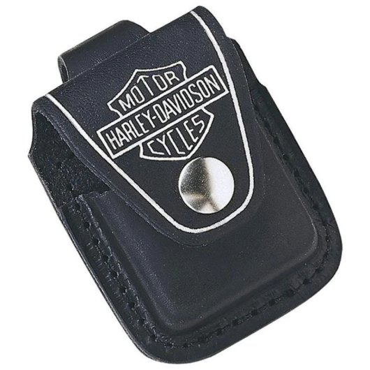 Harley-Davidson logotips uz īstas melnas ādas šķiltavu maciņa ir lieliski piemērots jūsu dārgo Harley-Davidson šķiltavu pārvadāšanai. Šis maisiņš der arī citām Zippo šķiltavām.